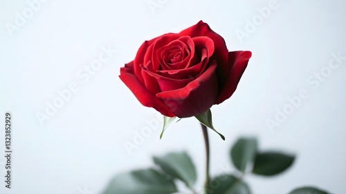 White background with a single red rose, sharp focus, minimalist and elegant.