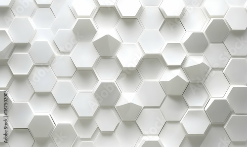 White background with hexagonal patterns and technological elements for a technology