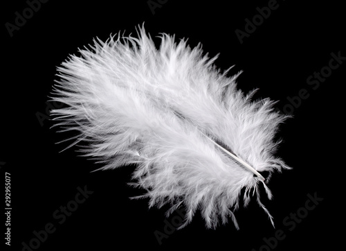 White bird feather isolated on black background