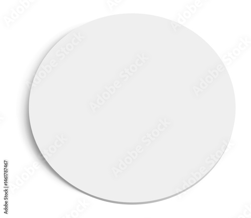 White blank circle casting a soft shadow on a pristine white background, creating a visually appealing and minimalistic design with ample copy space for various applications