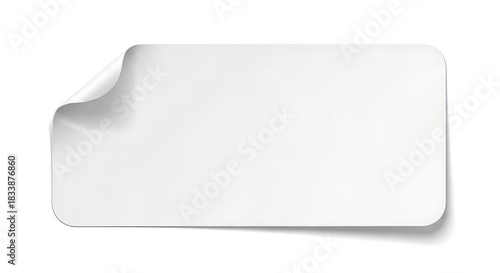White blank rectangular label sticker with curled edge design