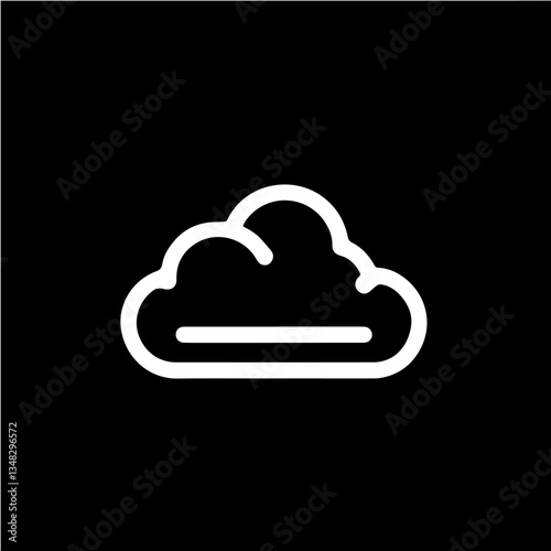 White cloud icon with a line under it, on a black background.