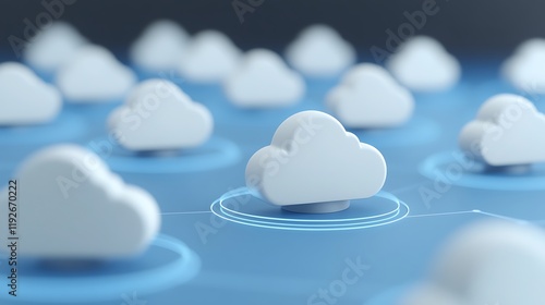 White Cloud Shapes Connected by Network Lines Representing Cloud Computing Technology Concept
