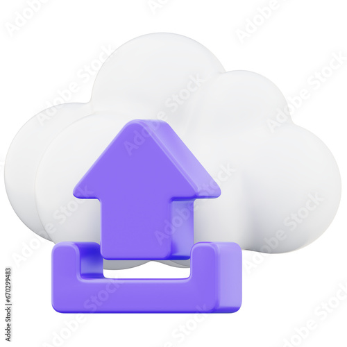 White cloud upload icon, cloud computing symbol 3d render illustration isolated on transparent background