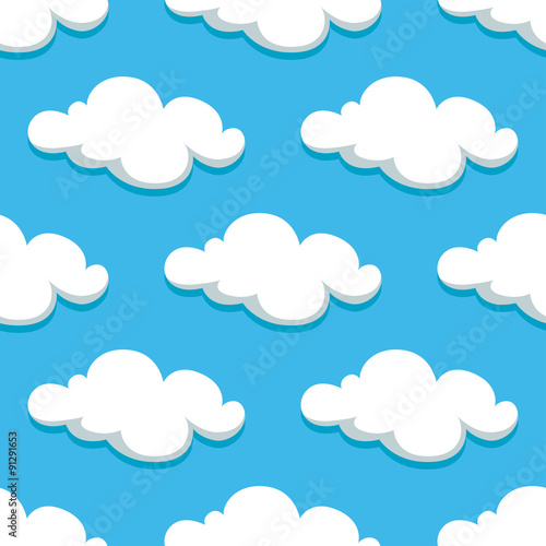 White clouds and sky seamless pattern