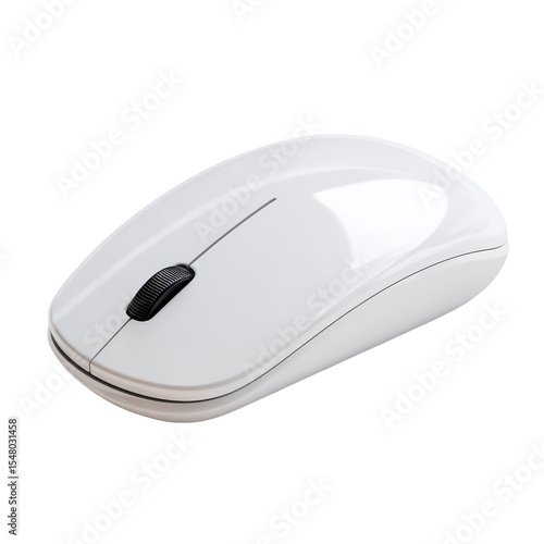 White computer mouse with a black button. 3D png transparent background
