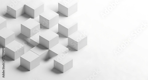 White cubes arranged in a geometric pattern on white surface
