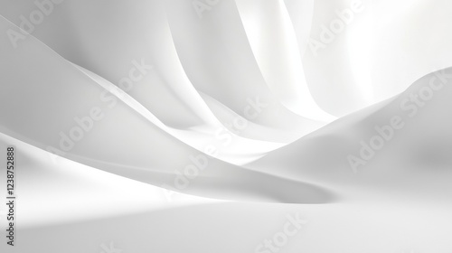 White Fabric Abstract Waves Flowing in Light Creating Soft Curves and Dynamic Surface Texture