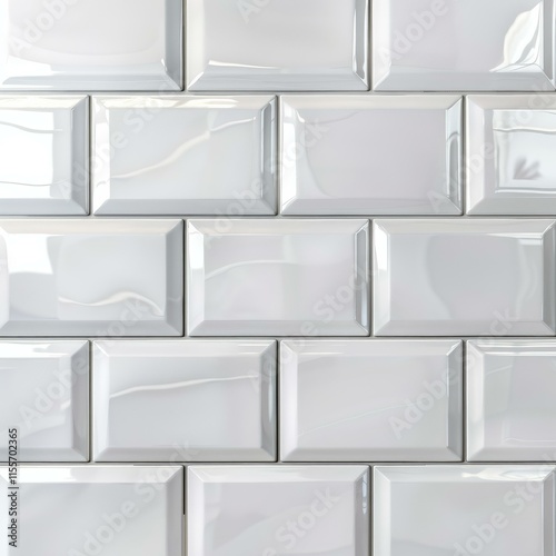 White glossy rectangular ceramic tiles are forming a textured wall