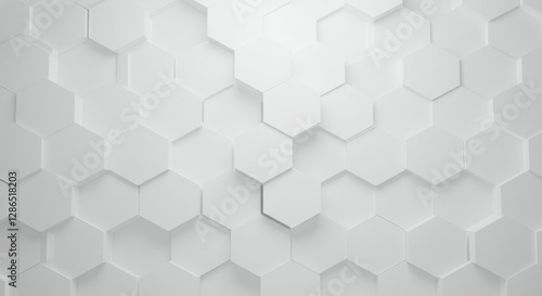 White hexagonal pattern, 3D geometric texture, abstract background, honeycomb structure, minimalist design, light and shadow play, monochromatic, subtle depth, architectural detail, clean modern aesth