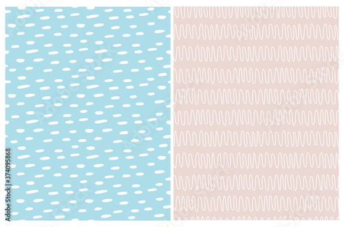 White Irregular Hand Drawn Wavy Lines and Spots Isolated on a Light Blue and Light Beige Background. Simple Infantile Style Abstract Geometric Print.