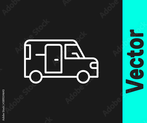 White line Minibus icon isolated on black background. Vector.