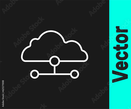 White line Network cloud connection icon isolated on black background. Social technology. Cloud computing concept. Vector