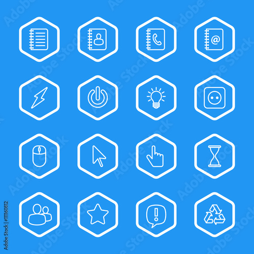 white line web icon set with hexagon frame for web design, user interface (UI), infographic and mobile application (apps)