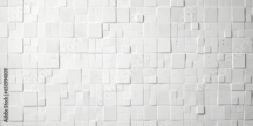 White Mosaic Tile Background with Geometric Squares, Showcasing the Artistic Arrangement and Structural Beauty of Tiled Surface Textur