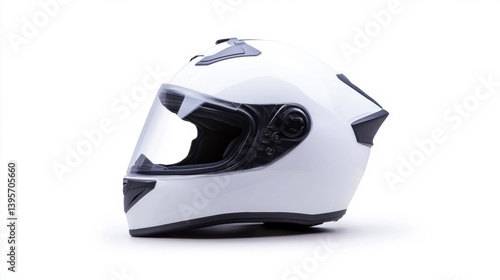 White motorcycle helmet isolated on white background.