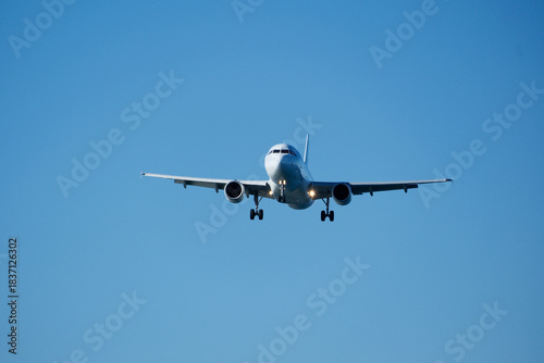 White Plane Approaching Runway Against Blue Sky