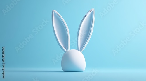 White rabbit ears on a pastel blue background. Easter vibes in 3D.