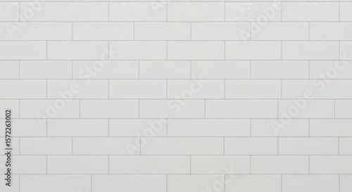White rectangular subway tiles arranged in a staggered pattern on a wall with subtle glossy texture