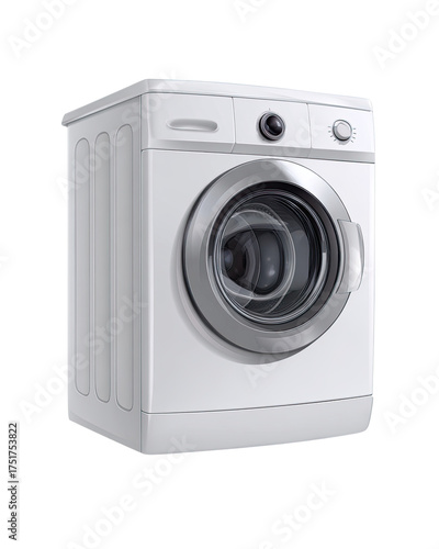 White, rectangular washing machine with a silver-toned drum and door. Features simple, modern design
