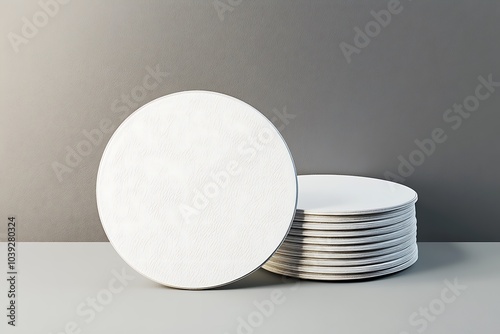 White round coasters stack mockup, 3d rendering. Empty circle mat for drink mockup