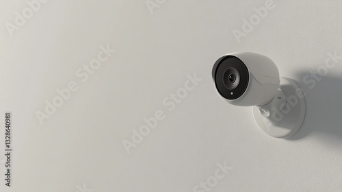 White security camera mounted on a wall.