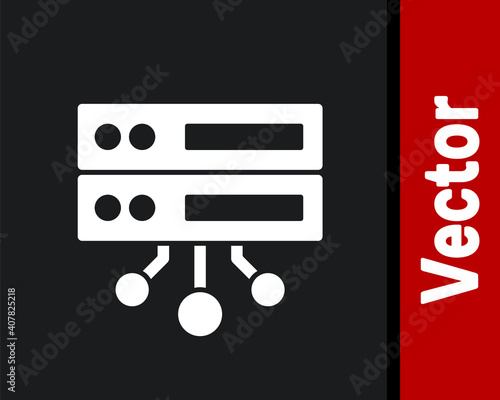 White Server, Data, Web Hosting icon isolated on black background. Vector.