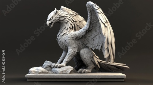 White Stone Griffin Statue 3D Render