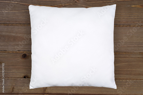 White Throw Pillow Mockup on Rustic Brown Wood