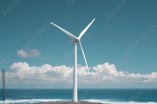 White wind turbine on a beach