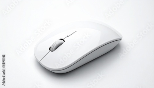 White Wireless Computer Mouse with Scroll Wheel on White Surface and Neutral Background