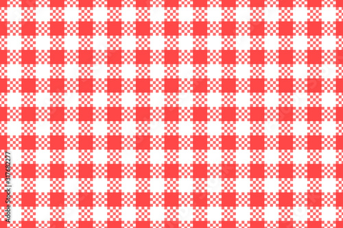 Wide red checkered with white seamless pattern. Vector stock repeating texture background. Kitchen surface design