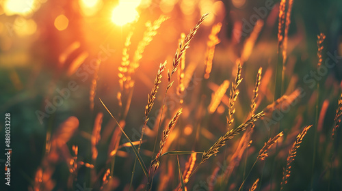 wildgrass at sunrise with blurred background, created with generative AI technology