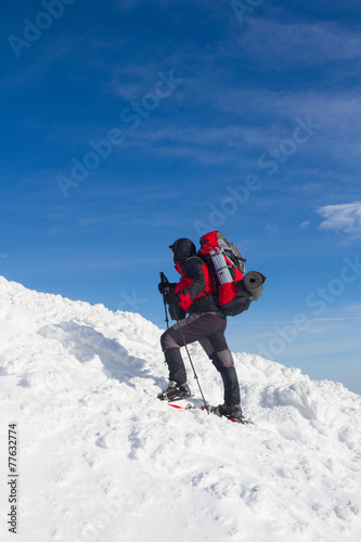 Winter hiking in snowshoes.