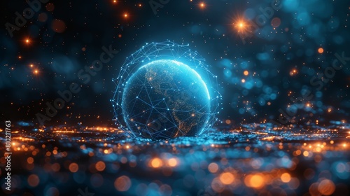 Wireframe technology sphere with connecting dots. BIG data visualization. 3D rendering.
