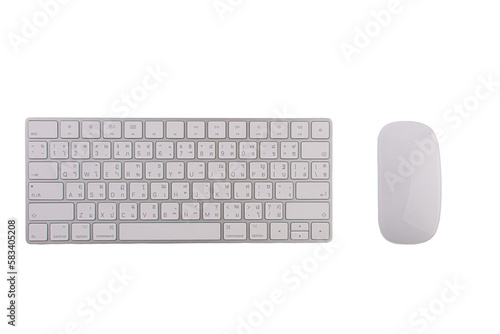 Wireless computer keyboard and mouse on transparent background
