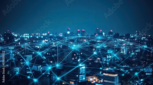 Wireless network, Connection technology concept, Information communication network, abstract line connection on night city background -