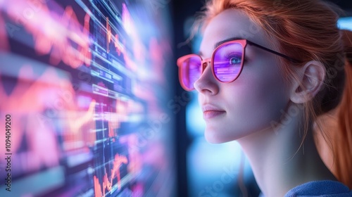 Woman Analyzing Data on Futuristic Screen Tech Innovation