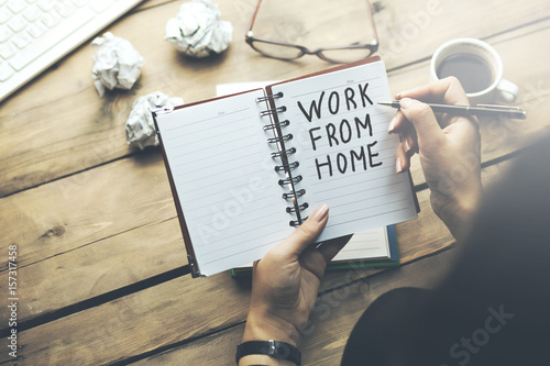 woman hand notebook written work from home text