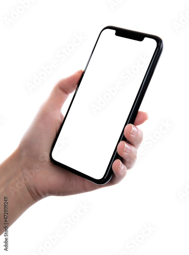 Woman hand using smartphone isolated on white background
