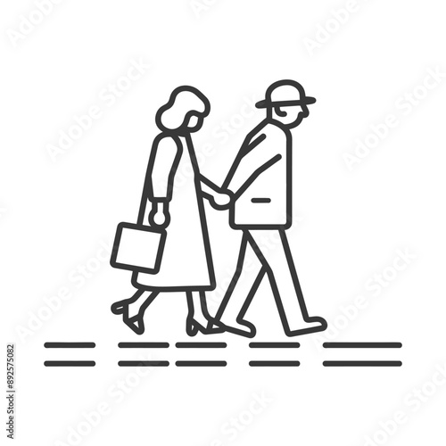 woman helps the elderly man cross minimalist line art icon logo symbol