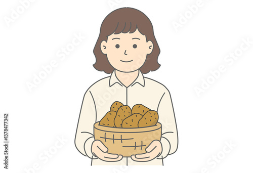 Woman Holding Potatoes Illustration