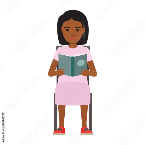 Woman Seating with Open Book Flat Vector