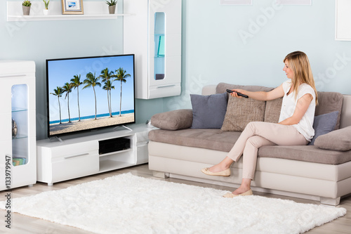 Woman Watching Television At Home