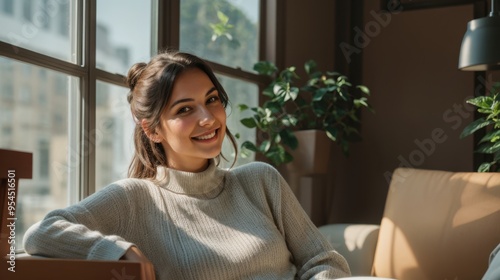 Woman's contemplation by the sunlit window