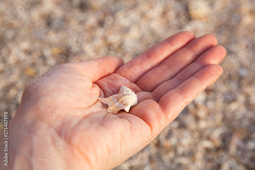 Woman's hand holding a seashell