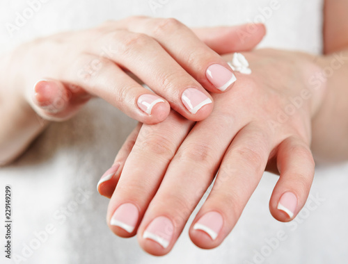 woman's hands applying cream