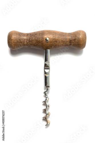 Wooden corkscrew isolated on white