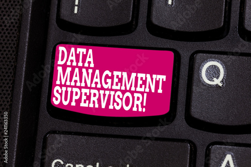 Word writing text Data Management Supervisor. Business concept for ensuring the efficient and effective operation Keyboard key Intention to create computer message pressing keypad idea