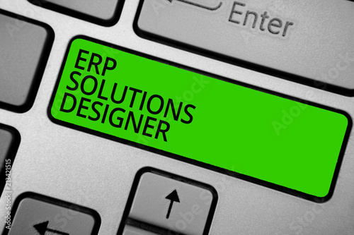 Word writing text Erp Solutions Designer. Business concept for elegant optimized modularised and reusable possible Keyboard green button hit key typing work use computer program software.